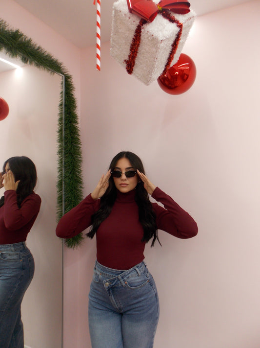 Body taglia unica, collo alto, tessuto caldo costina. Veste da taglia XS a ta...