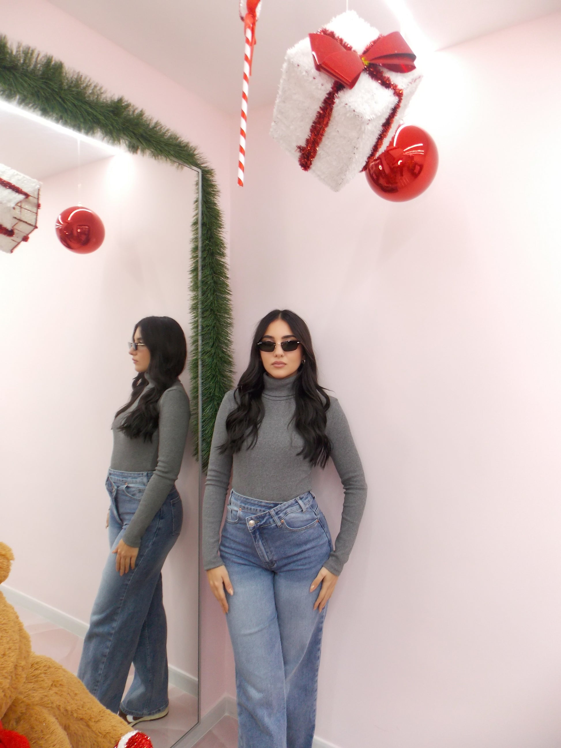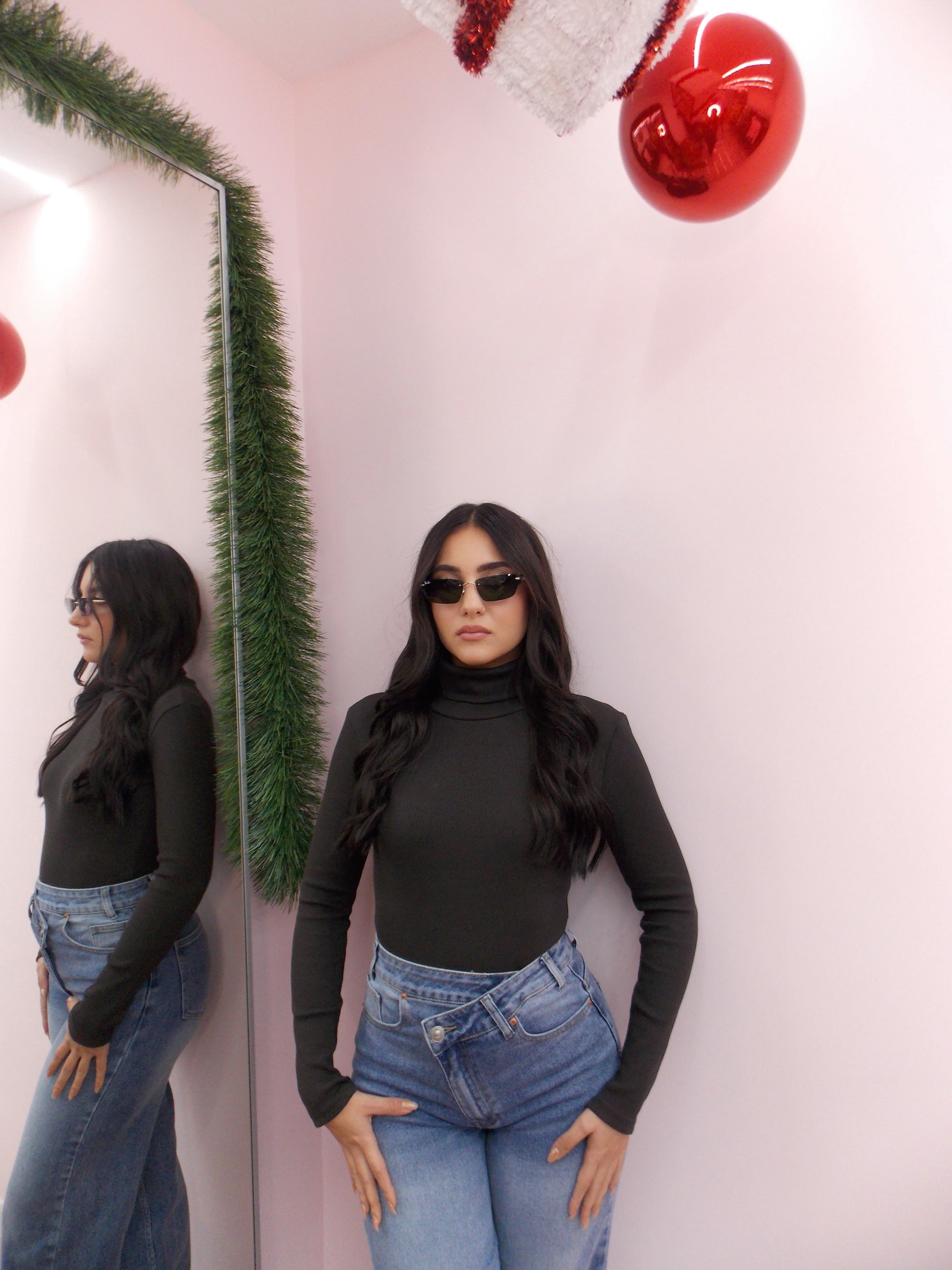 Body taglia unica, collo alto, tessuto caldo costina. Veste da taglia XS a taglia M.
