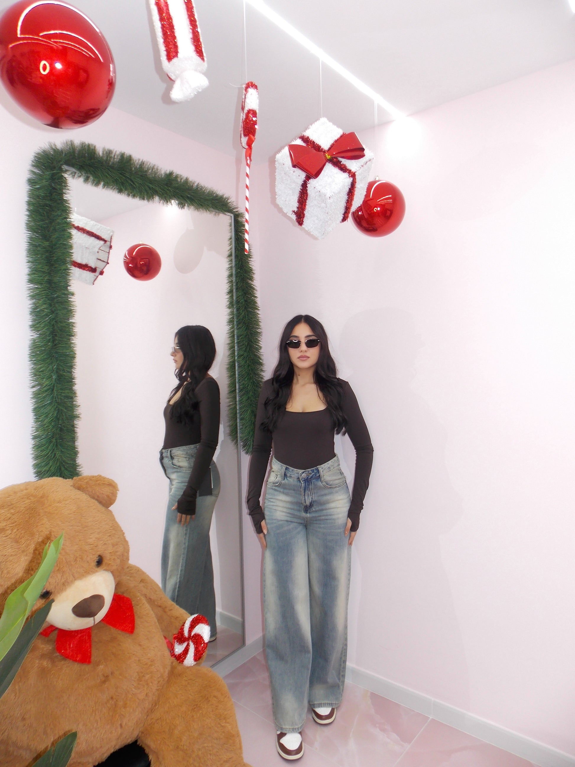 Denim lavaggio chiaro , sfumature sabbia. Vestibilità regolare.