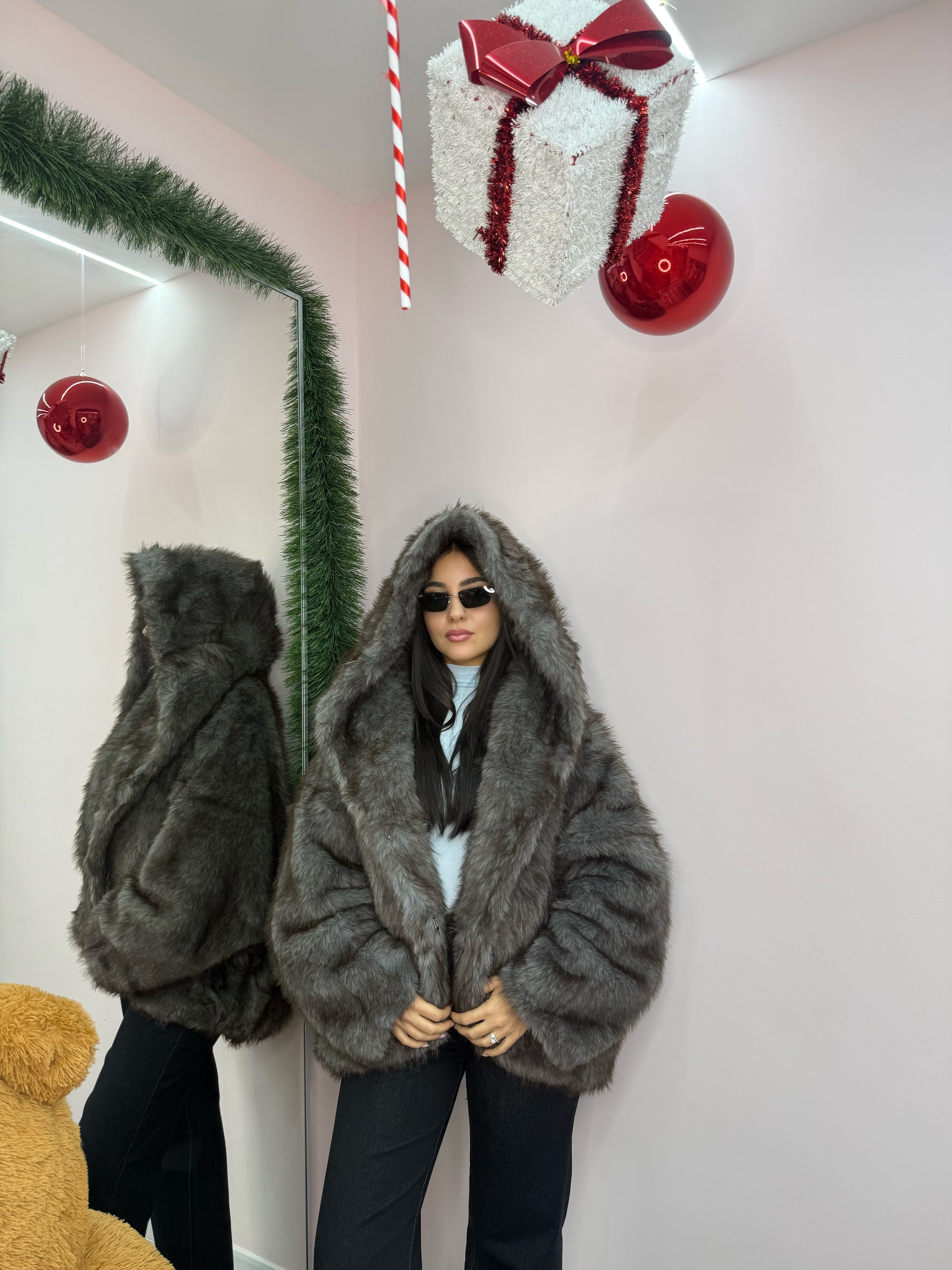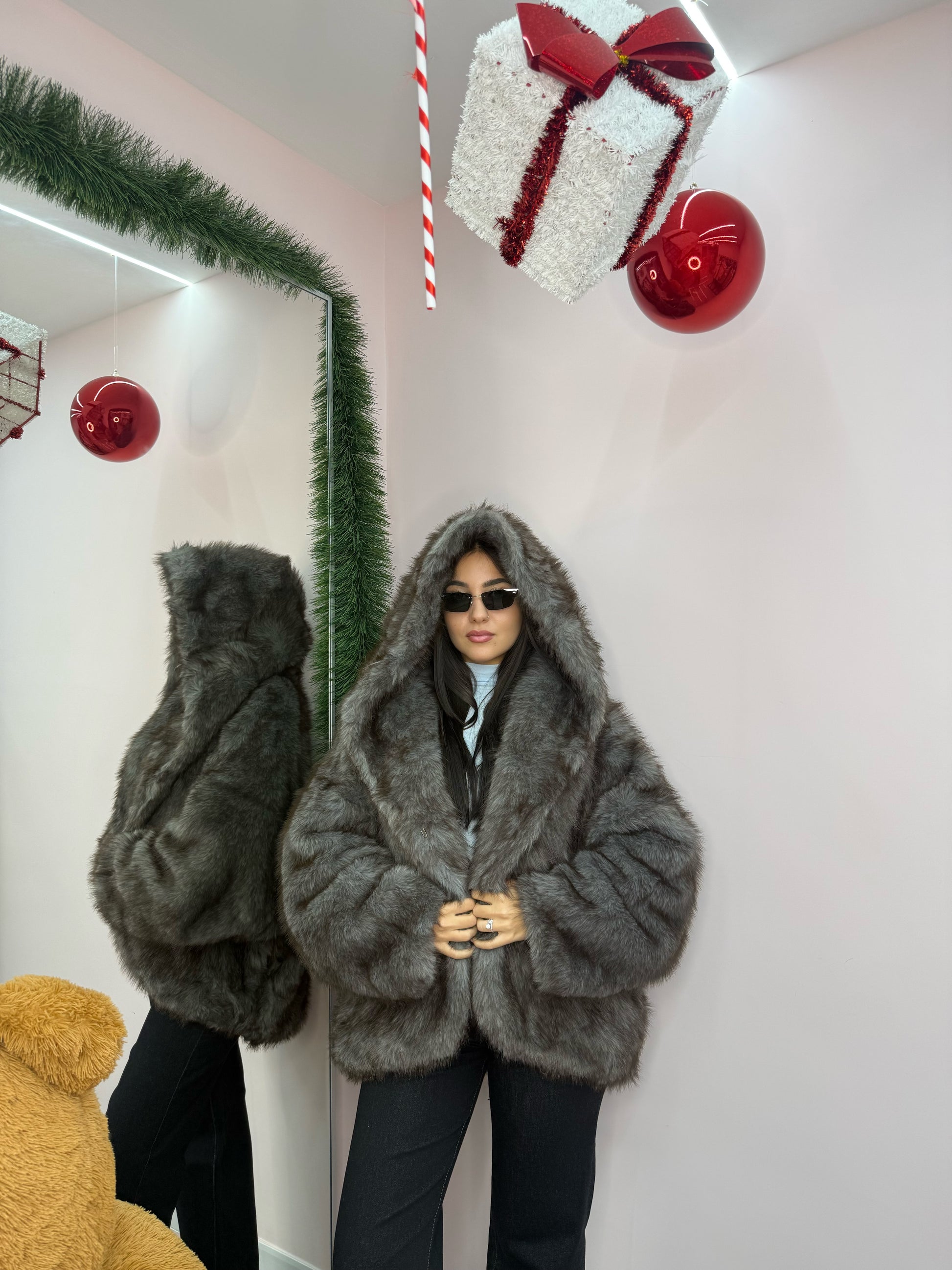 Taglia unica , veste ta taglia XS a taglia XL . Interno foderato, tasche , cappuccio.