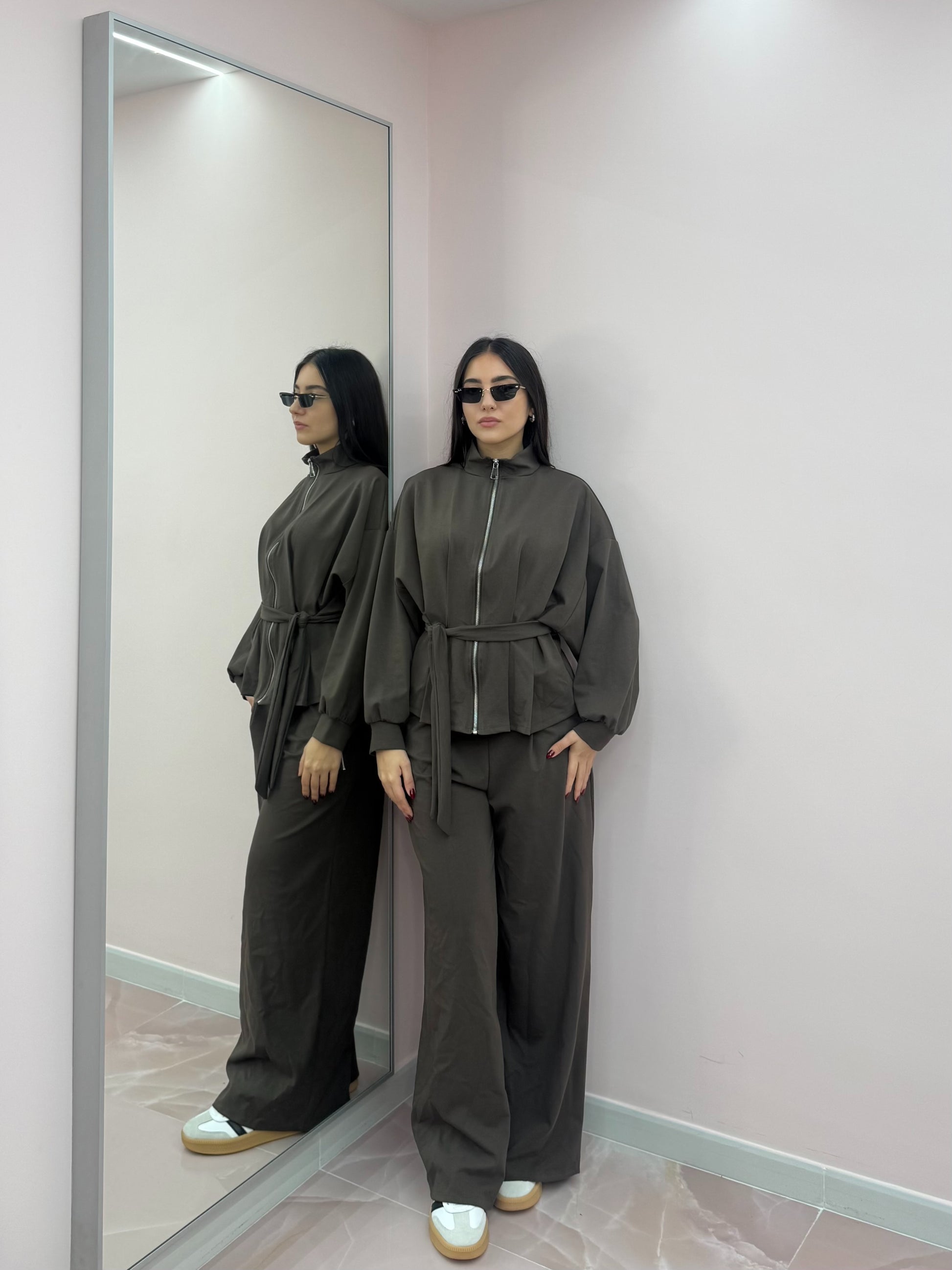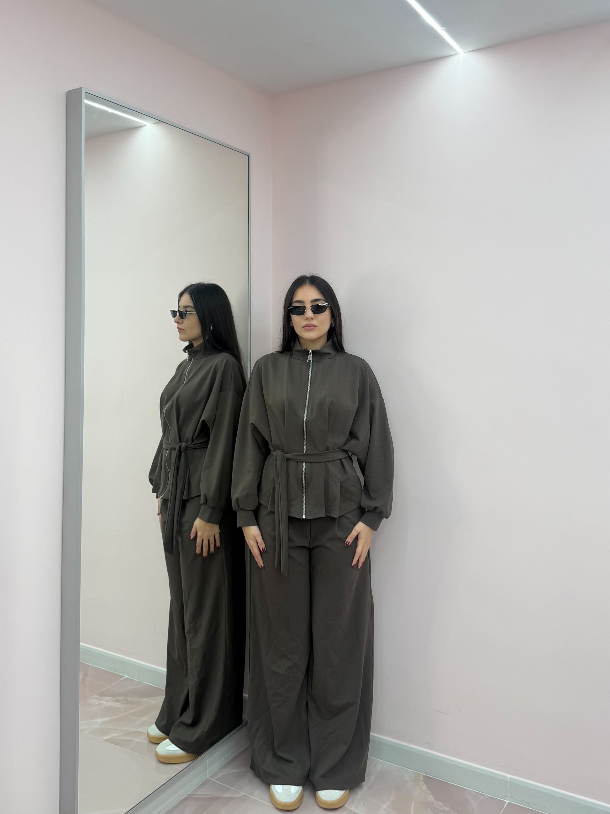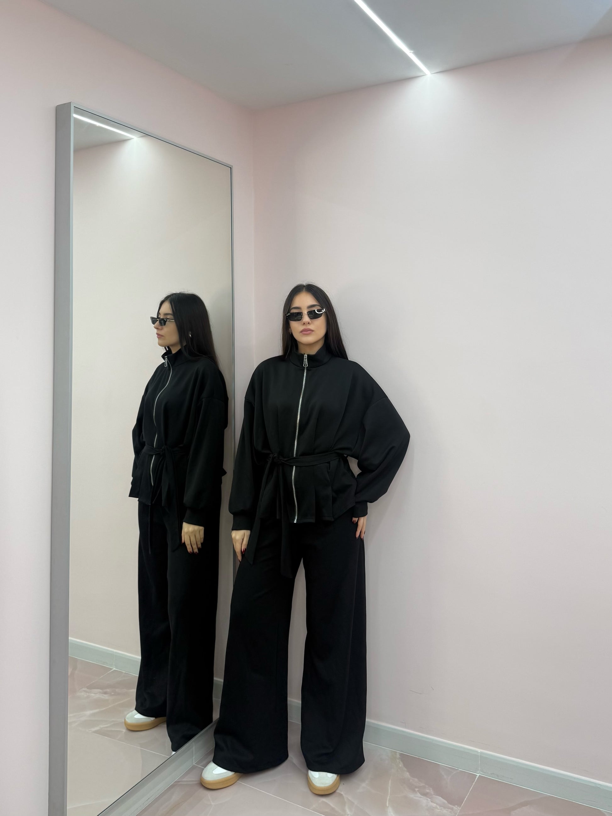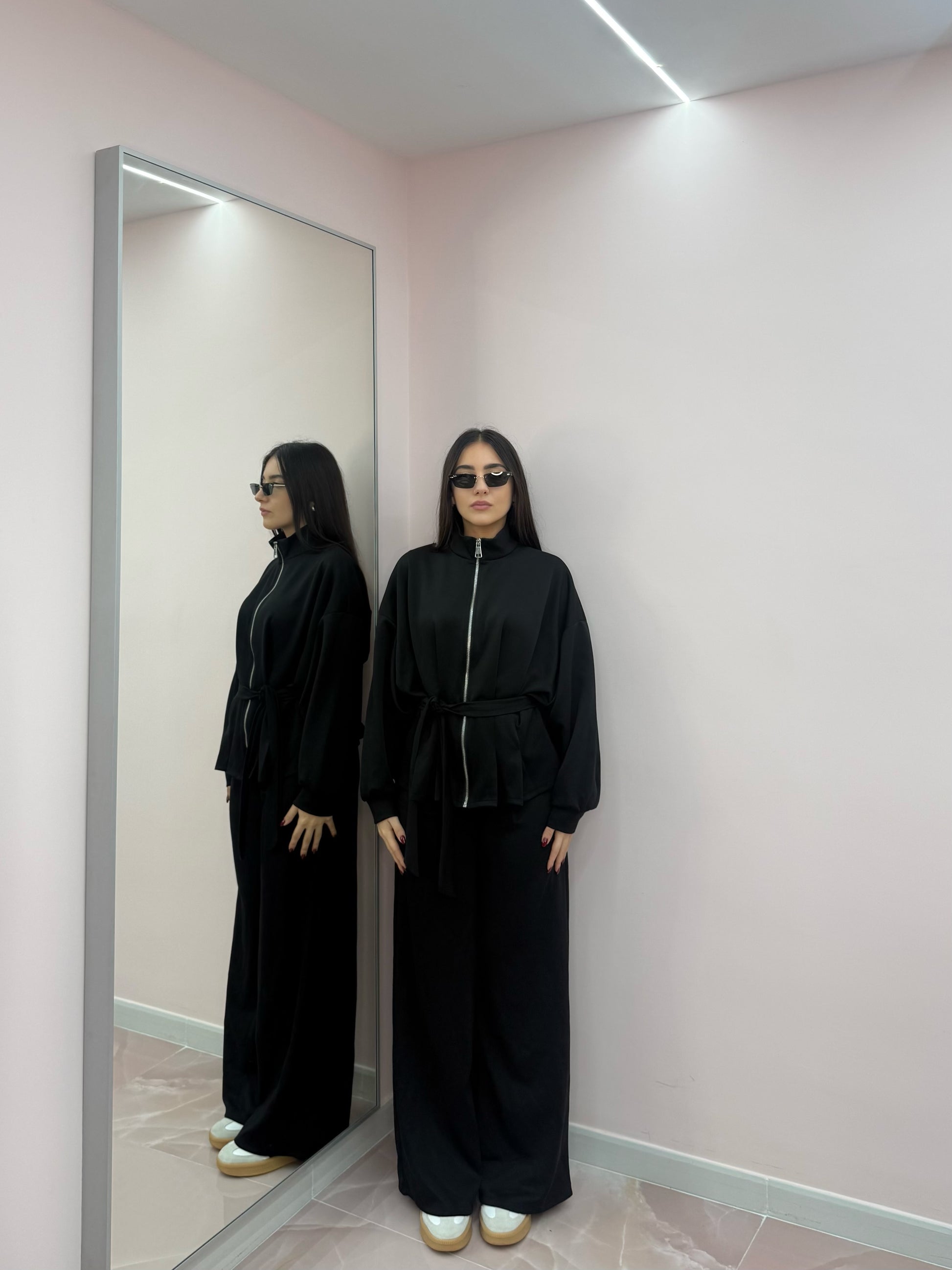 Tuta con zip sul davanti e fusciacca nel punto vita.